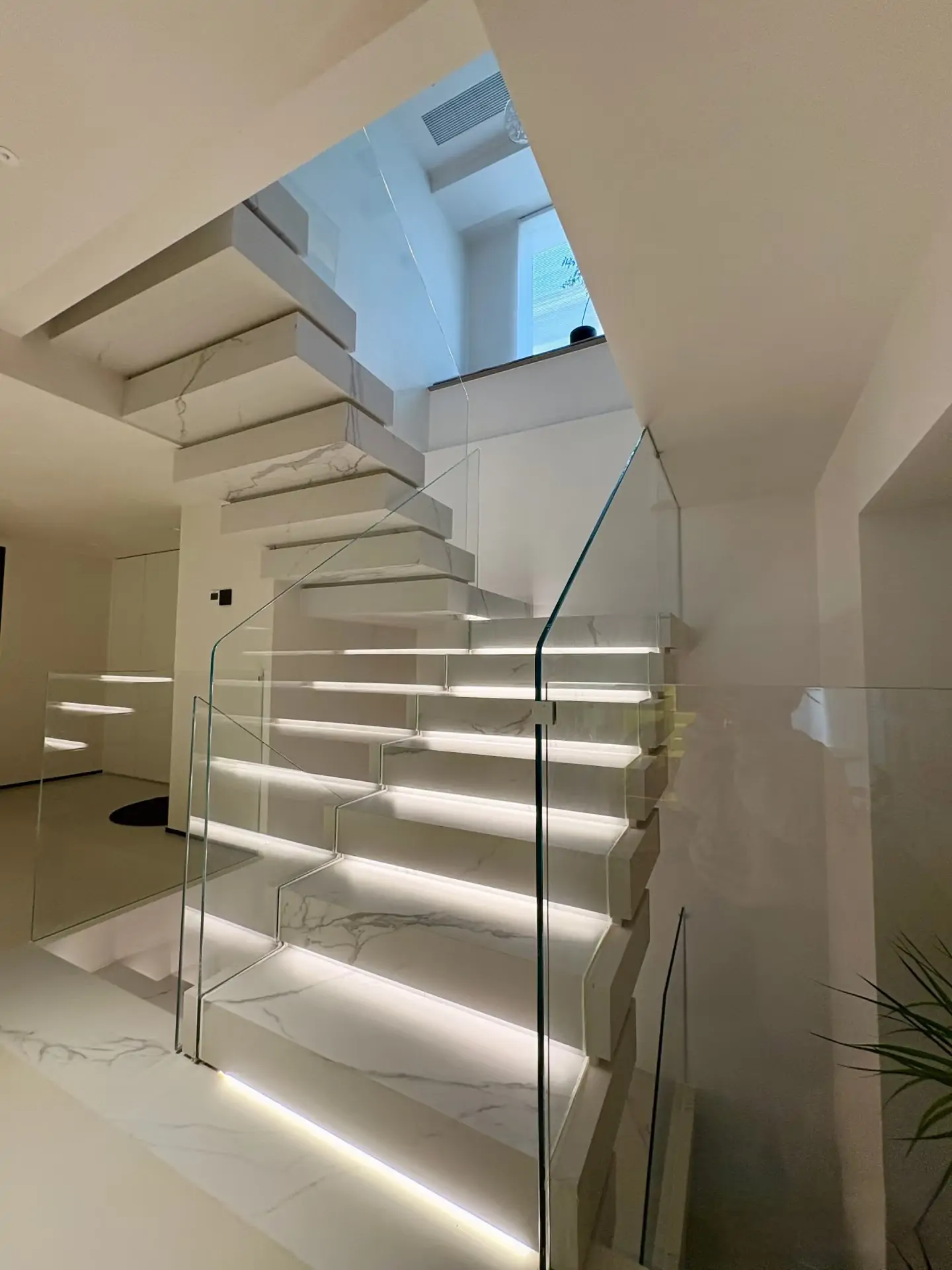 Our floating staircases create a stunning, open aesthetic with treads that appear to stack seamlessly. Ideal for modern and minimalist interiors, this cantilevered design maximizes light flow and enhances the sense of space. Custom-crafted from steel, wood, or glass, each staircase combines bold aesthetics with structural integrity. The perfect centerpiece for contemporary homes, lofts, and commercial spaces.